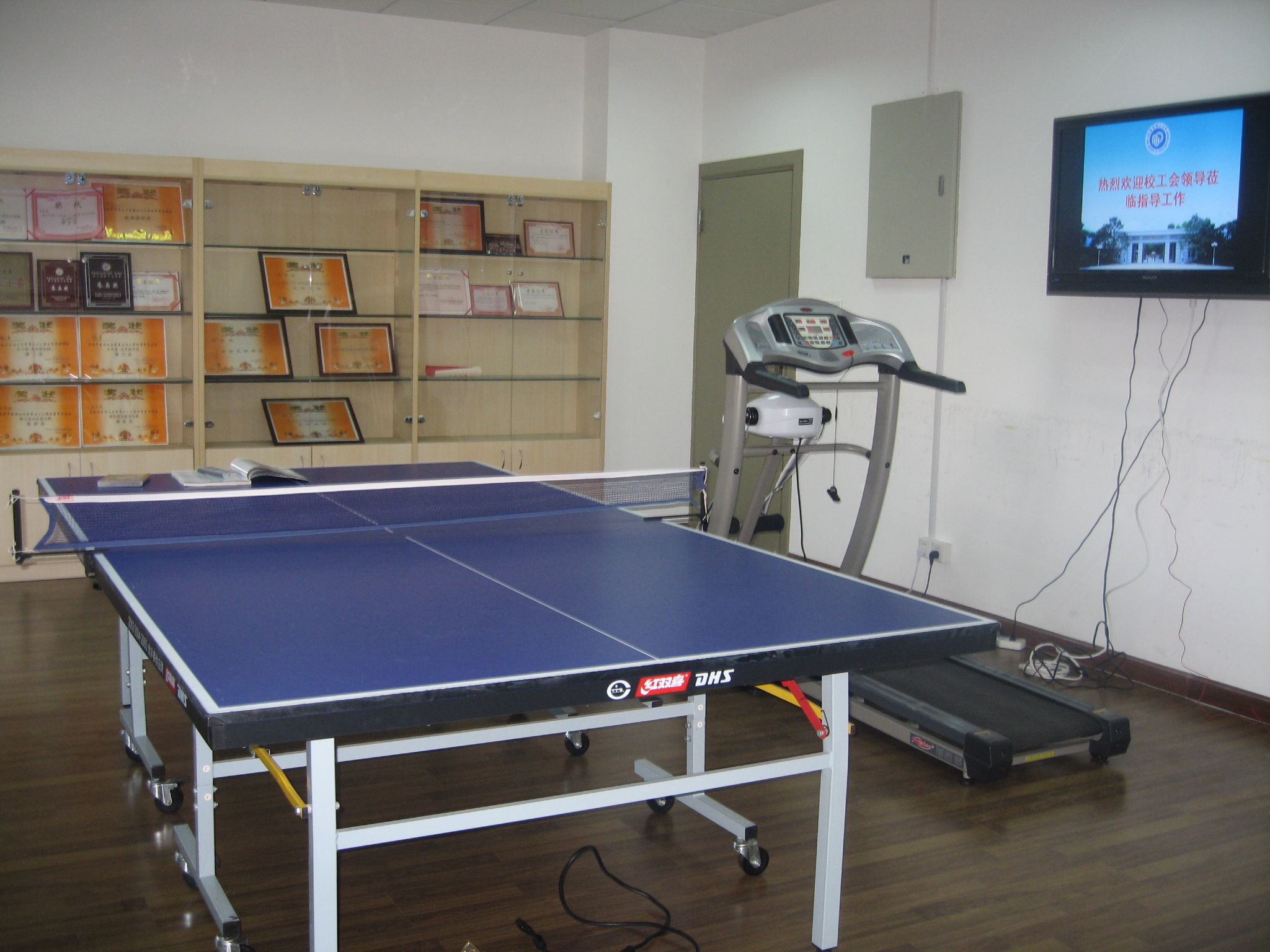 教工小家活动室,工会主席刘桂霞老师就活动室内的新型多功能液晶彩电、卡拉ok设备、跑步机、乒乓球桌等进行了介绍与演示,整个教工小家活动室的建设与布置得到了全体工作小组成员的一致认可。活动室的橱窗内整齐陈列着同人动漫