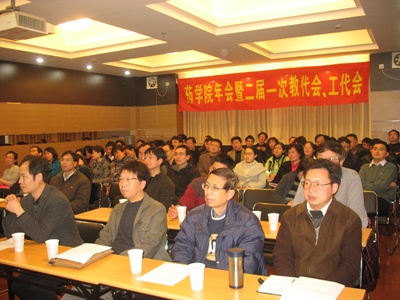 二届一次教代会、2009年工作年会在实验十八楼315室召开,会议由前学院党总支书记陆兵主持。钱旭红校长、蒋华良院长、常务副院长徐玉芳教授、党总支书记王喆及全院教师出席了会议。