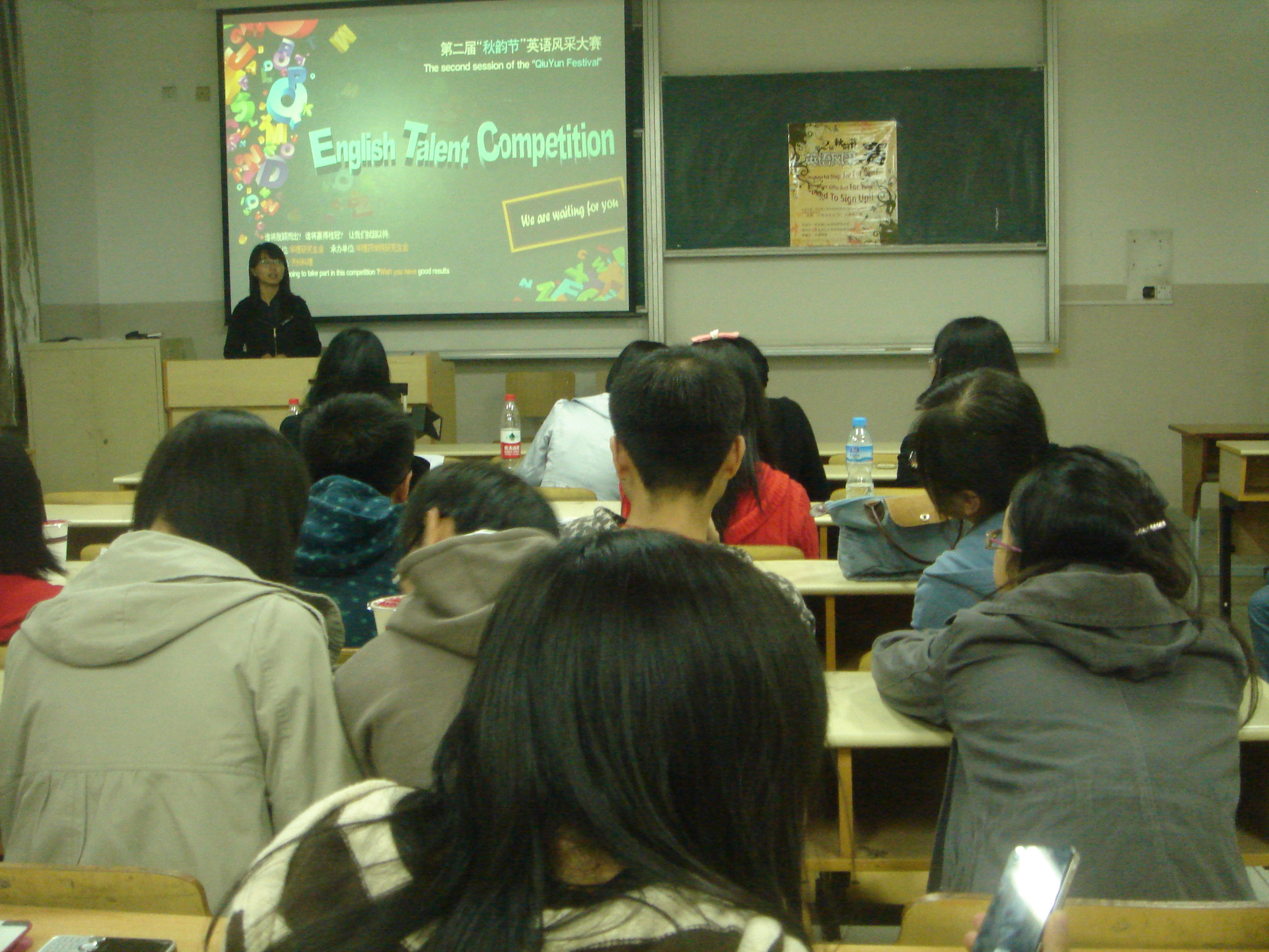 研究生会承办的秋韵节第二届英语风采大赛拉开了帷幕。本次初赛旨在选出语言水平、才艺、台风等各方面表现最优秀的八位选手参加决赛。校研究生会副主席樊榕、外语学院研究生会主席文芳、首届英语风采大赛冠军沈卉担任此次初赛的评选嘉宾。