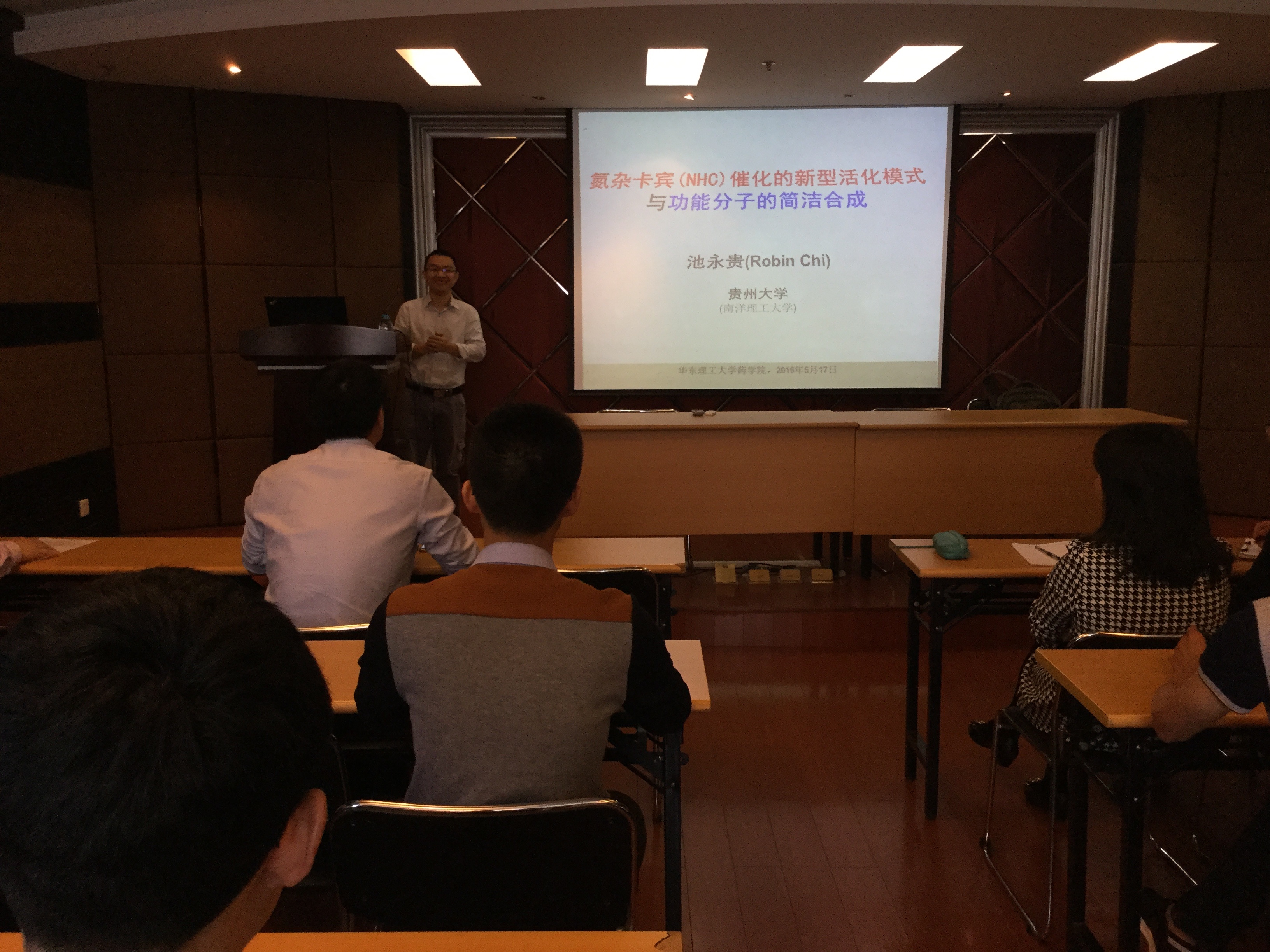 邀请,教育部*特聘教授(2014),贵州大学池永贵教授做客名师讲坛,于5月17日为华理师生作了题为“New Basic Activation Modes Enabled by Carbene Organic Catalysts and Rapid Synthesis of Functional Molecules”的学术报告。本次名师讲坛由同人动漫