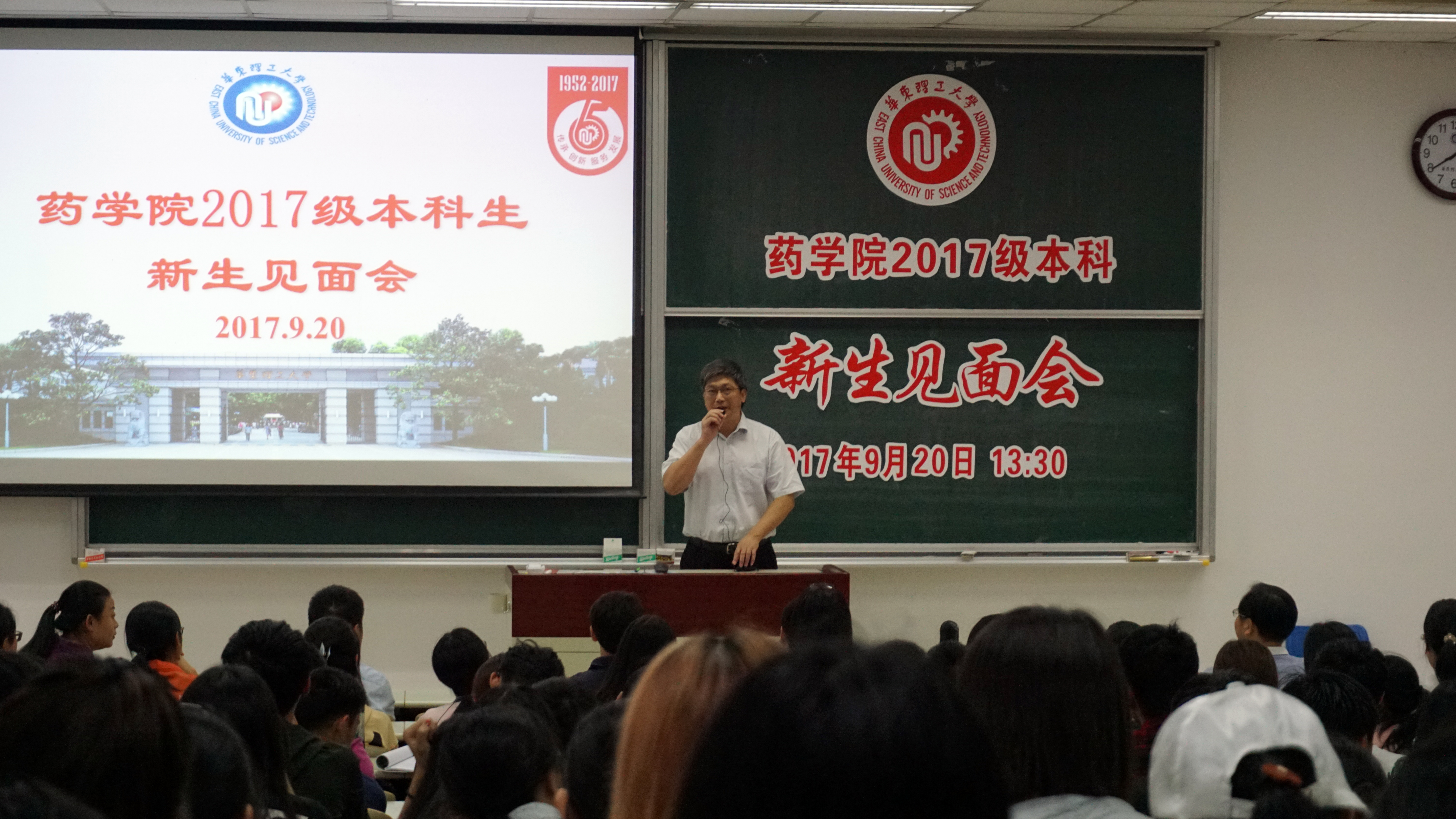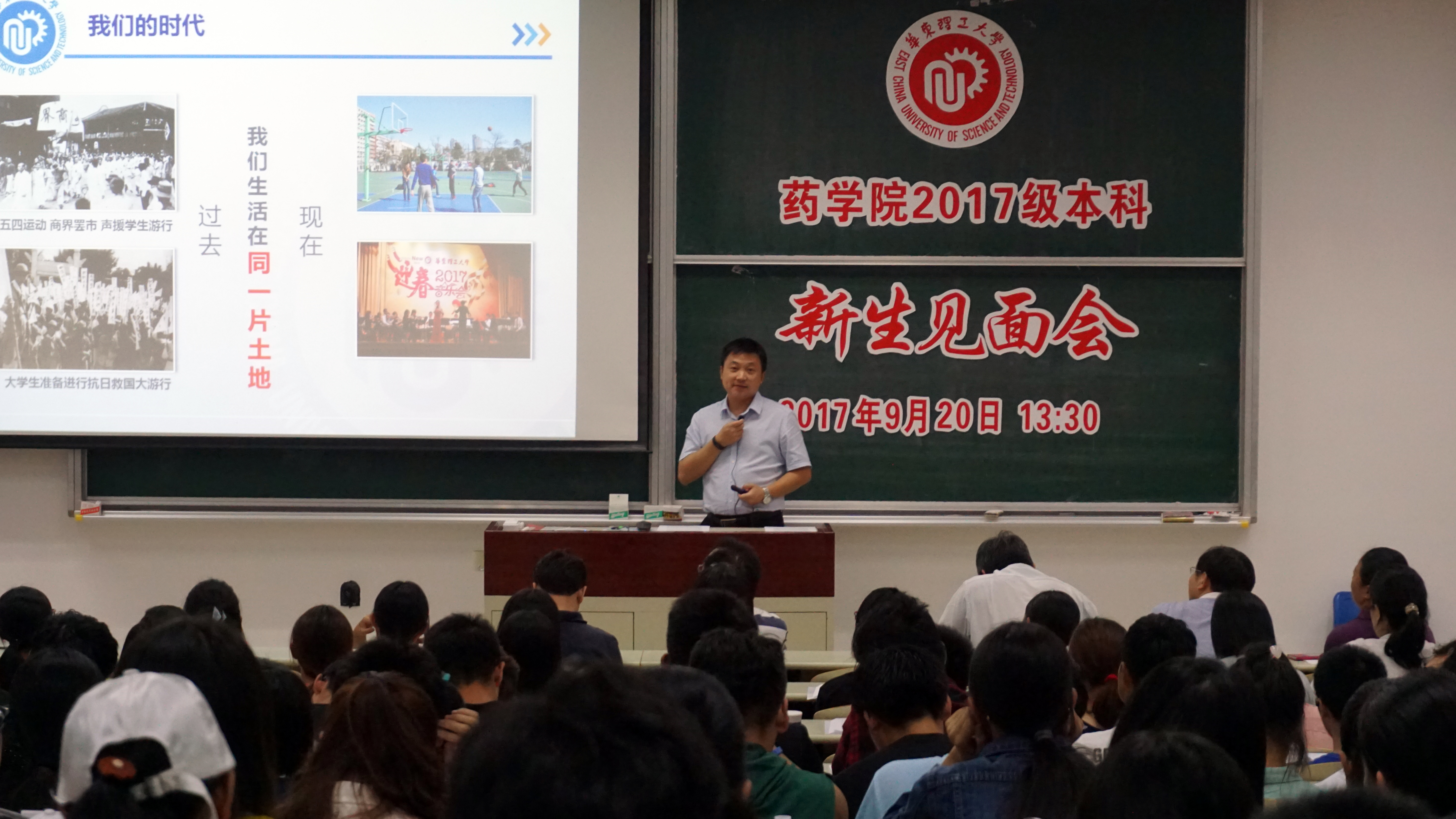 学院党委书记李剑以“我的华理,我的药院,我的大学”为题为新生带来一节生动的思政课。他从历史沿袭和校情概述等方面向同学们介绍了学校的历史与现状,并从学院历史、师资力量、学科建设、人才培养、科学研究、合作交流等方面将一个鲜活的同人动漫