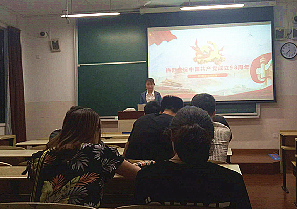 硕182班党支部在第七教学楼101教室开展了建党98周年庆七一主题党日活动,活动分为党建知识问答与政治生日两部分。党支部13名党员全部准时出席。
