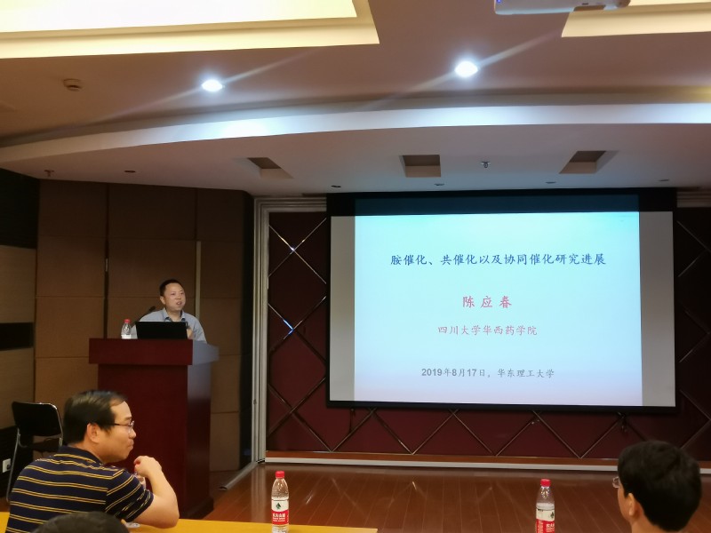 教授,博士生导师陈应春教授,于8月17日上午为华理师生做了题为“胺催化、共催化以及协同催化研究进展”的名师讲坛学术报告。报告会由邓卫平主持。