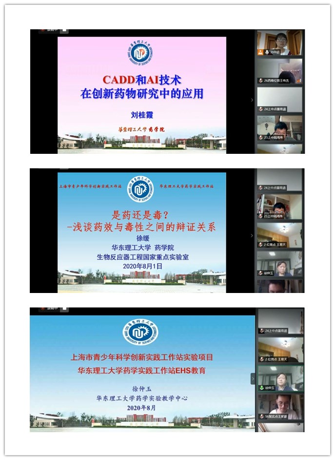 药学实践工作站的基本情况。第五期工作站将在前四期工作的基础上,结合药学实验教学中心、上海市新药设计重点实验室、上海市化学生物学重点实验室等科研实践基地,组建了一支以教授和副教授为核心骨干,热心青少年创新能力培养的指导教师队伍,以创新实践课题为纽带,开展青少年创新药物研究思维与能力的培养活动。课题涵盖计算机辅助药物设计、药物化学生物学、光控基因表达、药物制剂、药物分析和中药有效成分提取分离等药学研究的多个方向,各具特色。