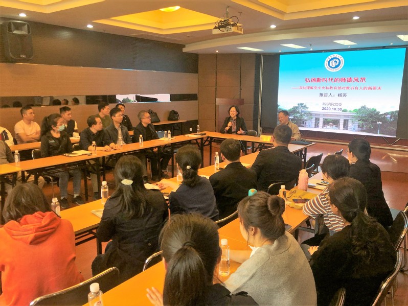 党委特邀请杨苏教授为教师作“弘扬新时代的师德风范——深刻理解党中央和教育部对教书育人的新要求“的教职工理论学习专题报告会。院党委委员、领导班子、系所中心负责人、导师组组长、班导师、辅导员、新教工及教师代表等进行了现场学习,其他教职工开展了在线视频学习。报告会由学院党委书记张青主持。