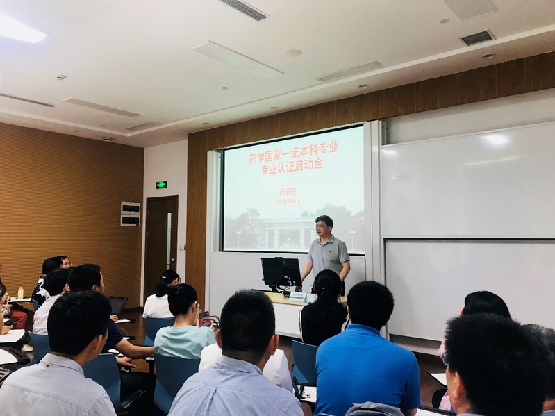 接着宋恭华代表学院讲话。他强调了此次药学本科专业认证的重要性和必要性,同时认为这不仅是对学生培养过程和培养质量的一次系统全面的考核,也是专业建设和发展的一次契机。他指出药学国家一流本科专业认证是学院本年度工作的重中之重,希望教师们以立德树人为目标,认真做好本科教育教学各项工作,最后他希望学院全体教师,尤其是药学专业的专任教师以及学工、行政等应高度重视,并积极主动配合,认真完成专业认证的各项工作。