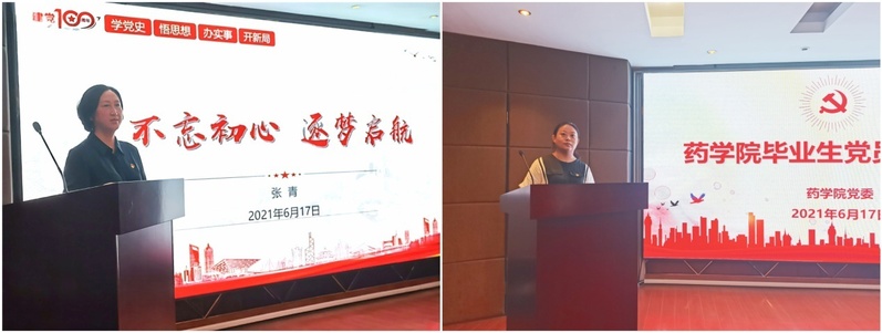 夏菲作为毕业生党员代表发言。她回顾了在华理奋斗的青春与足迹,并表示未来的日子里无论是继续投身科研还是踏上工作岗位,作为一名中国共产党党员,都将谨记爱国爱民、不断锤炼品德、勇于善于创新,在攀登知识高峰中追求卓越,在真刀真枪的实干中成就一番事业。