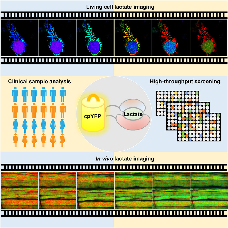 传统认为,乳酸是糖酵解途径产生的代谢废物和能量代谢中的 “丑小鸭”,但这种观念正在逐步发生改变。越来越多的研究表明乳酸是重要的能量燃料、合成砌块和信号分子,是具有多种关键作用的代谢“明星”,在生理和病理过程中发挥重要作用。然而,乳酸代谢呈现剧烈的动态变化和复杂的空间分布,传统的生化方法难以实现活细胞和在体水平的动态追踪。因此,迫切需要建立一种面向活细胞和在体的、高时空分辨的乳酸代谢监测新技术。