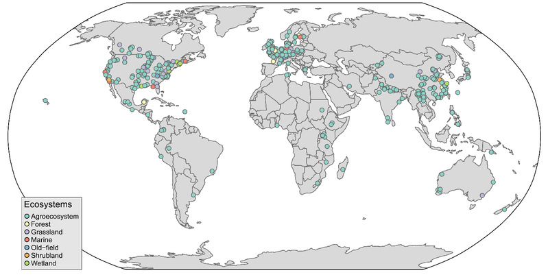 已有理论研究与实践探索表明,利用生物多样性防控植物有害生物,是安全可行的生态环保技术途径之一,实施该技术控害的理论支撑主要来自物种多样性控害,例如,天敌假说、资源集中假说、保险假说、聚集假说(Wan* et al., J. Appl. Ecol., 2022)营养级联动理论(Wan et al., Nature Plants, 2020)等。然而,基因多样性(或称“遗传多样性”)控害的理论相对较少。鉴于此,该文整合了全球413个植物多基因与单/纯基因的比较试验数据,结果显示:在农业、森林、草原、湿地、海洋等生态系统,增加植物基因多样性,提高了捕食性和寄生性天敌的丰度和捕食/寄生率,降低了植食性昆虫、杂草以及植物病害、线虫的侵害,提升了作物产量与品质以及植物生产力;并发现植物多基因与单/纯基因对增加农业、森林、草原等生态系统中的天敌及其增强控害效果并无显著影响。因此,在该类系统实施植物保护技术时,只需在主栽植物田块通过间套作同种其他1个品种,便可实现对植物病虫草的控制。