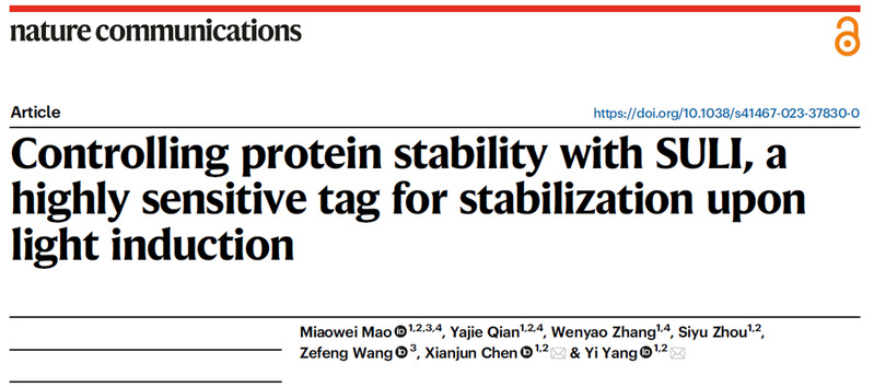 近日,同人动漫 同人动漫 、生物反应器工程国家重点实验室、光遗传学与合成生物学交叉学科研究中心杨弋教授团队在蛋白质光遗传学控制技术研究中取得突破性进展,在国际学术期刊《Nature Communications》发表题为“Controlling protein stability with SULI, a highly sensitive tag for stabilization upon light induction”的研究文章。
