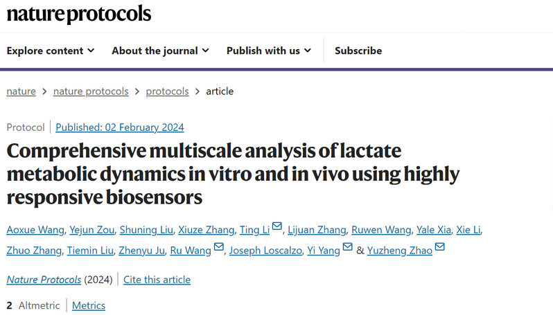 【创新前沿】Nature Protocols发表我院乳酸代谢监测一站式系统解决方案