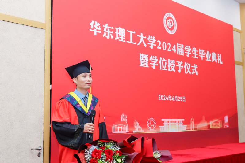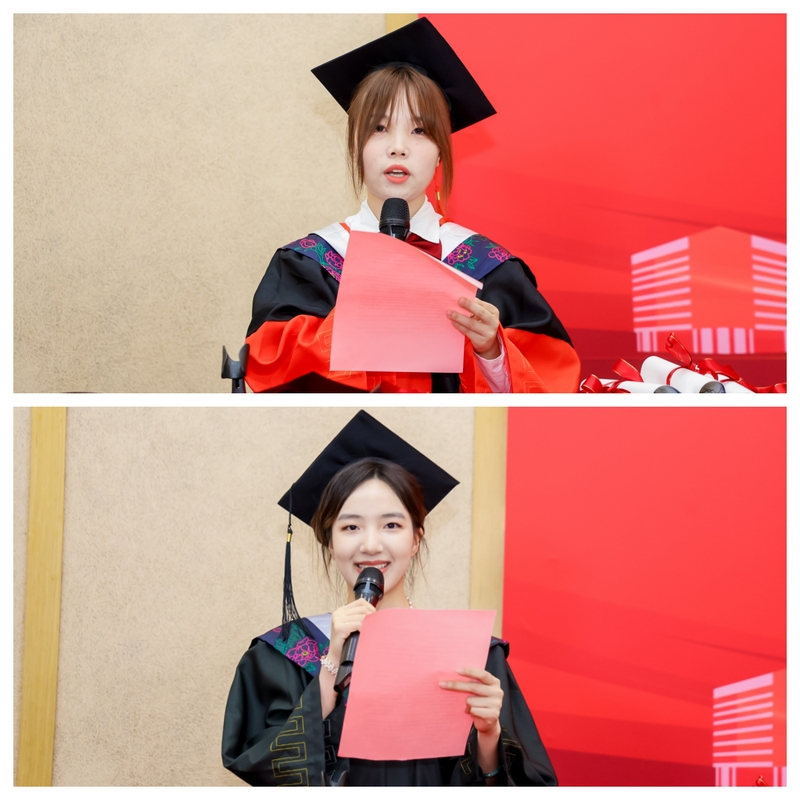 2024届博士研究生汪祎梦、本科生潘诗祺作为毕业生代表发言。汪祎梦同学分享了自己科研探索中的点点滴滴,表达了对母校深深的眷恋与感激之情。未来将继续秉承同人动漫