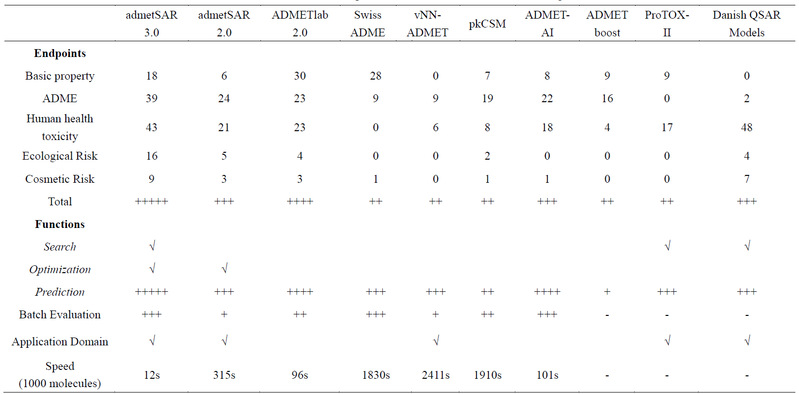 表1、admetSAR3.0与其他在线服务平台比较