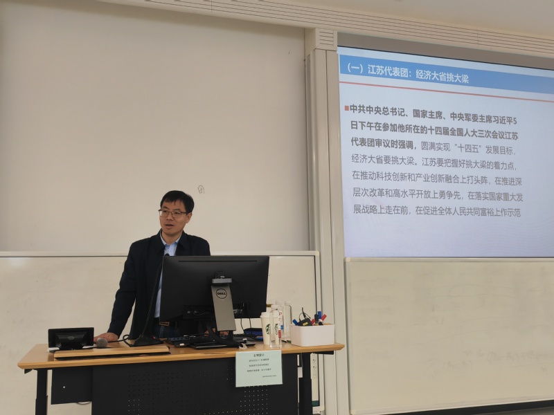 周建勇教授围绕全国两会的基本情况、习近平总书记两会期间的重要讲话以及大会通过的各项报告进行了全面、详实的介绍。他重点介绍了习近平总书记关于民营经济高质量发展、教育科技人才“三位一体”战略、国防现代化建设等内容。他指出,在民营经济高质量发展方面,习近平总书记重要讲话为民营经济的发展指明了清晰的方向,深刻强调了优化营商环境、激发市场活力和社会创造力的极端重要性。针对教育科技人才“三位一体”战略,要确立科学的教育评价体系,有效发挥指挥棒作用;要完善学校管理体系,落实学校办学自主权,不断提升依法治教和管理水平;要着眼现代化需求,适应人口结构变化,统筹基础教育、高等教育、职业教育,统筹政府投入和社会投入,建立健全更加合理高效的教育资源配置机制。